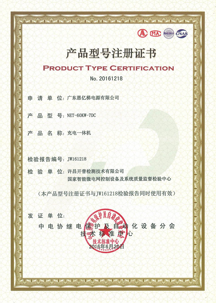 產(chǎn)品型號注冊證書(充電一體機(jī))