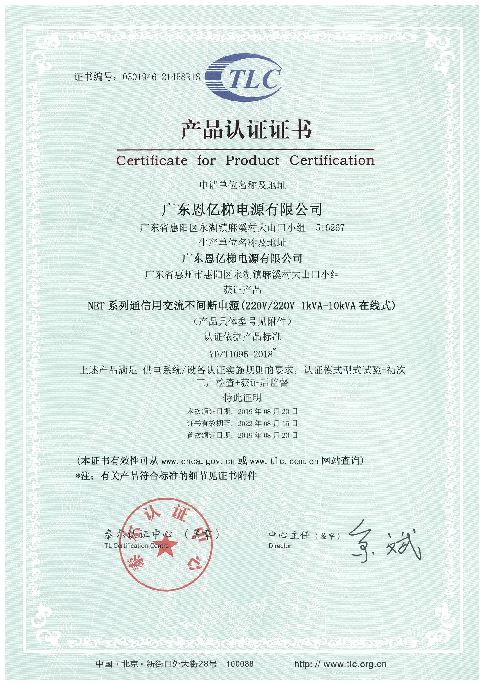 泰爾認(rèn)證(不間斷電源單進單出)