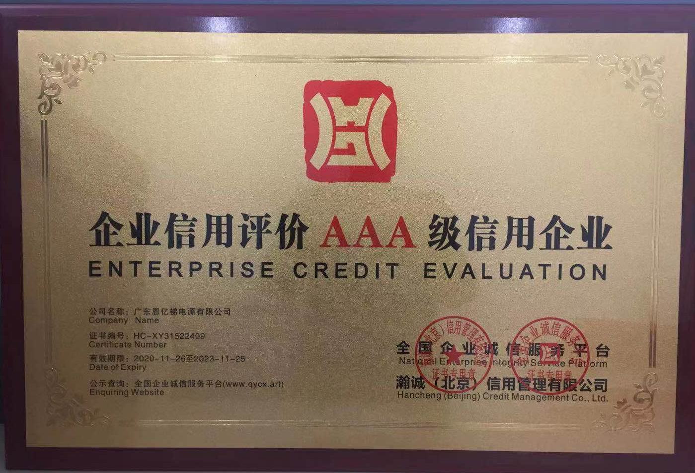 企業(yè)信用等級(jí)AAA證書(shū)